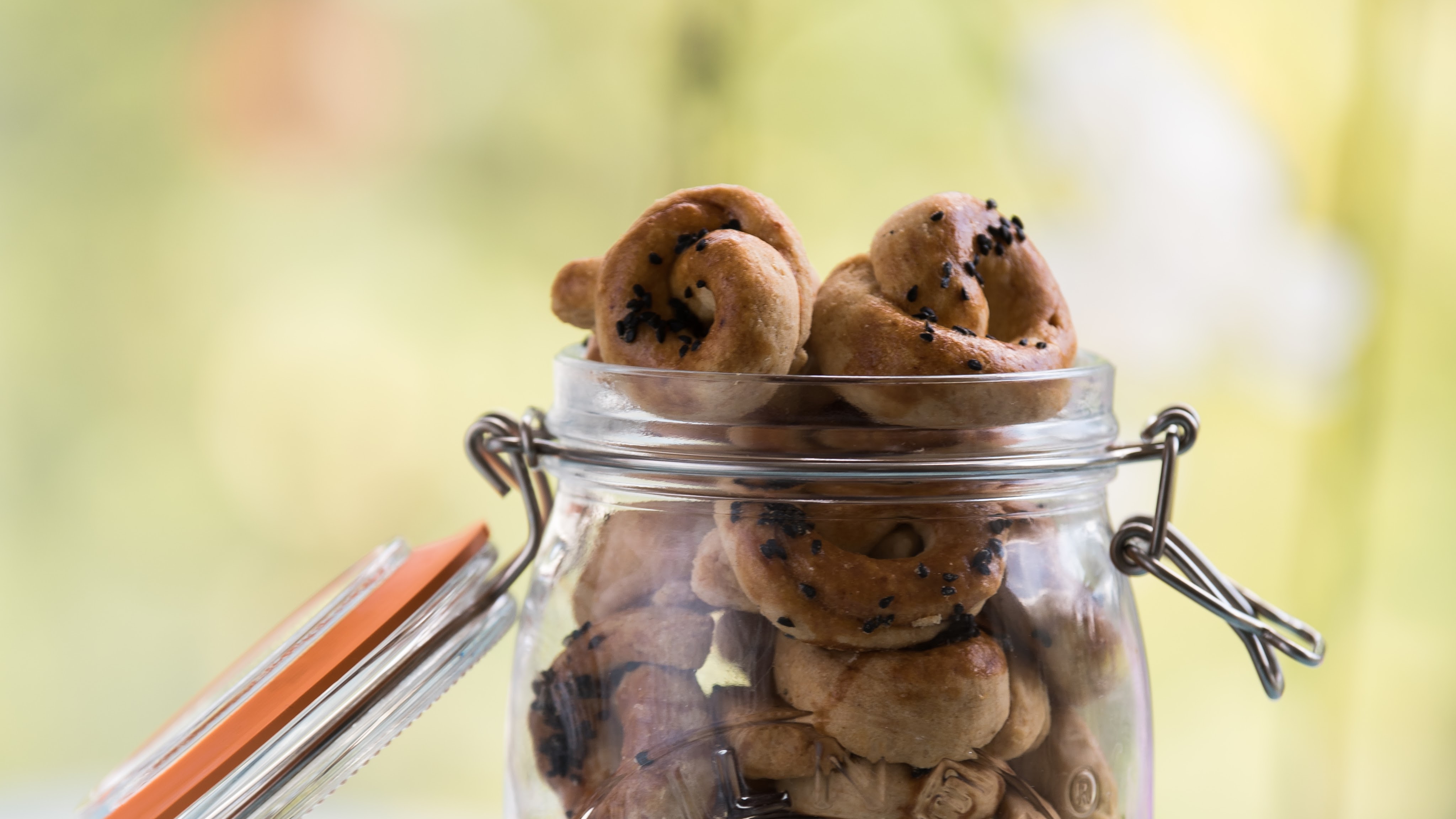 - Add topping: Brush each ring with the whisked egg and sprinkle with your choice of seeds.