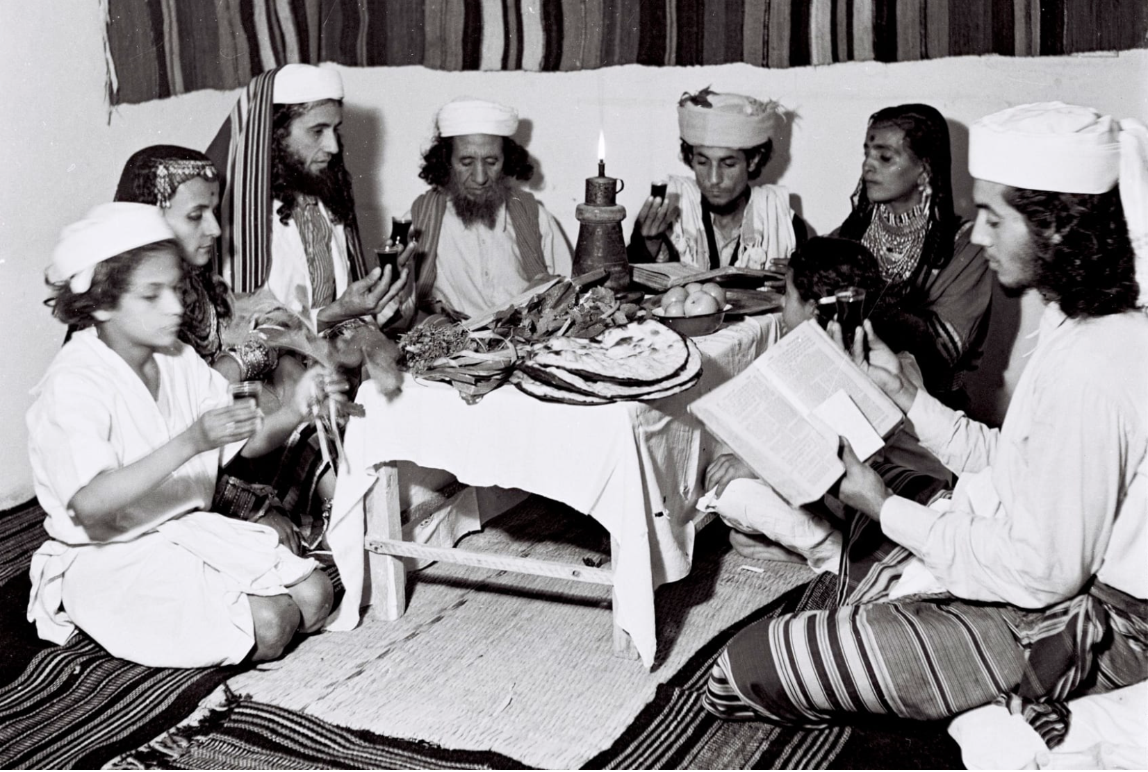 A Yemenite family celebrating the Pesach Seder at their new home in Tel Aviv in 1946.