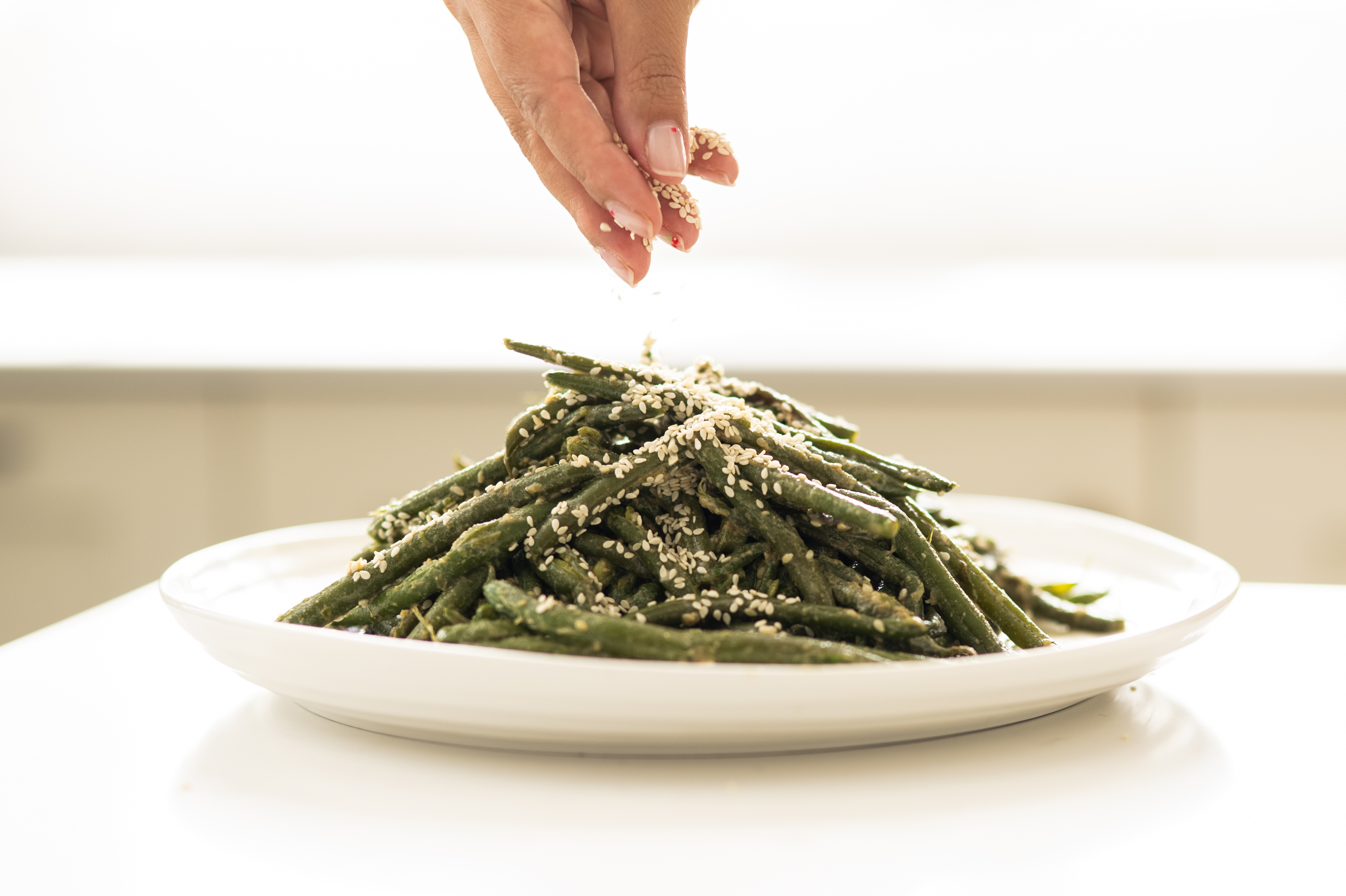 Odelle’s green beans are so delicious that they are requested time and time again. This is her recipe. Green beans are one of those ideal vegetables: easy to prepare, easy to check for bugs, and endlessly adaptable. Here, the method is simple but clever — one easy technique, one pan, and a big flavour payoff. The beans are dry-fried to blister and bring out their nuttiness, then quickly steamed in the same pot. Sesame appears in two ways: silky tahini that coats the beans and toasted sesame seeds that deliver a final flavour bomb, making them irresistible. Best of all, this is one of those recipes that can be made ahead of time and served warm or at room temperature.